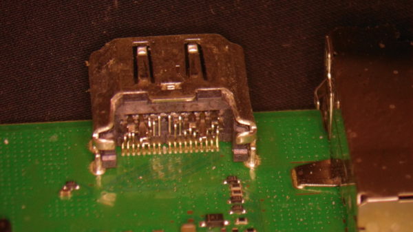 Une fois la carte mère extraite de son châssis, nous pouvons voir que le connecteur HDMI est en mauvais état.
